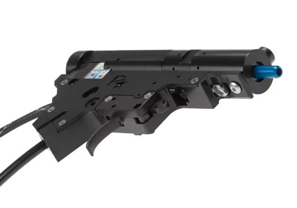 Dit complete drop-in systeem vervangt de volledige AEG-gearbox door een hoogwaardig, CNC-gefreesd chassis van sterk maar licht aluminium. Het betreft een dual-solenoid closed-bolt systeem, waardoor de poppet valve (lucht voor het schot) en de nozzle (BB-toevoer) afzonderlijk kunnen worden afgesteld. Zo heeft de gebruiker volledige controle over zowel de laadtijd als het gebruikte luchtvolume.