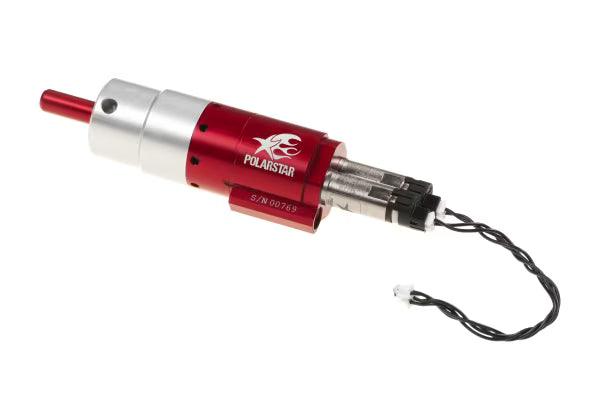 De motor bevat een poppet-klep in één stuk met een nieuw ontwerp waardoor hij kan werken binnen een breed drukbereik van 45 tot 145 psi. De degelijke constructie maakt het mogelijk het vermogen van de motor af te stellen zodat het energieprofiel past bij alles van CQB-tot DMR-type replica’s.